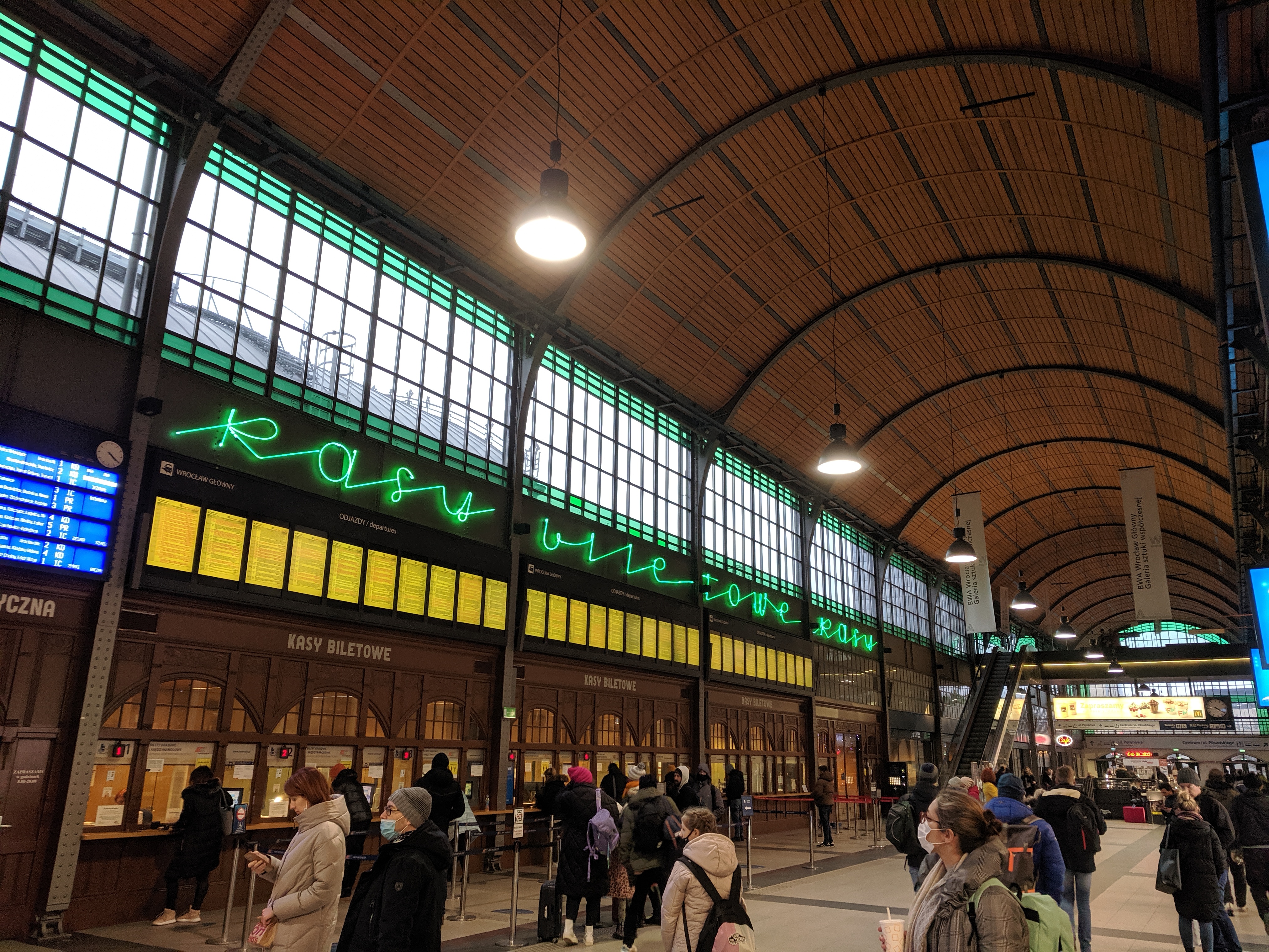 Tęczowa nieuchronnie prowadzi do najsłynniejszego z nieczynnych dworców Wrocławia i jednego z trzech najstarszych w ogóle: Dworca Świebodzkiego, neoklasycystycznego budynku z 1842 roku, pełnego architektonicznej klasy i łatwo rozpoznawalnego dzięki symetrycznej jońskiej kolumnadzie. W zeszłym roku minęło dwadzieścia lat, odkąd przestał pełnić pierwotną funkcję. Od tamtej pory starano się z lepszym lub gorszym skutkiem znaleźć mu jakąś rolę - odżył zwłaszcza dzięki makietowej atrakcji Kolejkowo, która jednak niedawno wyniosła się do Sky Tower (co tak emocjonalnie wydaje mi się ruchem upiornie złym, bo Kolejkowo pasowało do tego miejsca idealnie, a do Sky Tower pasuje jak luksusowa restauracja do Polanowic). Na tyłach dworca w każdym razie pewna funkcja - może mało prestiżowa, za to popularna - rozgrywa się niezmiennie, a jest to chyba najsłynniejsze wrocławskie targowisko. W kilku latach, jakie nastąpiły po napisaniu powyższych zdań, na dworzec wróciło więcej życia: otwarto tu popularną strefę gastronomiczną, prestiżowy pub spod znaku whisky i zdecydowano o nieodległym przywróceniu ruchu pociągów.