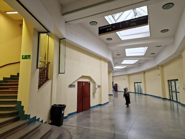 Największe wrażenie Hala robi jednak na mnie w środku. Padłem rażony zachwytem, gdy w końcu udało mi się do niej wejść - po raz pierwszy w życiu za dnia, bez koncertu, jako dorosłemu człowiekowi z wrażliwością architektoniczną. Ekspresjonizm miesza się tu niemal z sakralną, w jakiś sposób wręcz gotycką atmosferą, brutalna ascetyczność gołego betonu kontrastuje z misternym wykonaniem: fascynującym, "pajęczynowym" układem żeber tworzących kopułę; niemal mistyczny jest system światła, wpadający do środka przez kręgi okien i rozpraszany przez żebra. To naprawdę wybitna architektura, po której już nic tak dobrego we Wrocławiu nie powstało. Rzuciłem też okiem na stałą wystawę, poświęconą budowli.