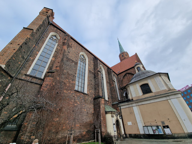 Na sam koniec pozostawiłem najważniejszy punkt tej części Starego Miasta - i choć nie posunę się do stwierdzenia, że ważniejszy niż wszystkie inne razem wzięte, to nie bez powodu wspominam o tym, że się do tego nie posunę. Kościół św. Marii Magdaleny to ścisły top wrocławskiej architektury sakralnej i architektury w ogóle. Dawniej był jedną z dwóch far miejskich razem z kościołem św. Elżbiety, dziś ma status katedry polskokatolickiej. Stoi parę kroków od rynku na miejscu romańskiej świątyni z pierwszej połowy XIII wieku, którą po najeździe mongolskim zastąpiła romańsko-gotycka, spalona w pożarze z 1342 roku. Obecny kościół pochodzi przede wszystkim z lat 1342-1362. Już w 1523 roku wyznanie rzymskokatolickie zostało stąd wyparte przez luteranów (kościół stał się głównym ośrodkiem wrocławskiej reformacji i protestantyzmu) i nie wróciło nigdy. Wrócił katolicyzm, ale w wydaniu polskokatolickim, w 1972 roku - po długich pracach naprawczych po wojnie.