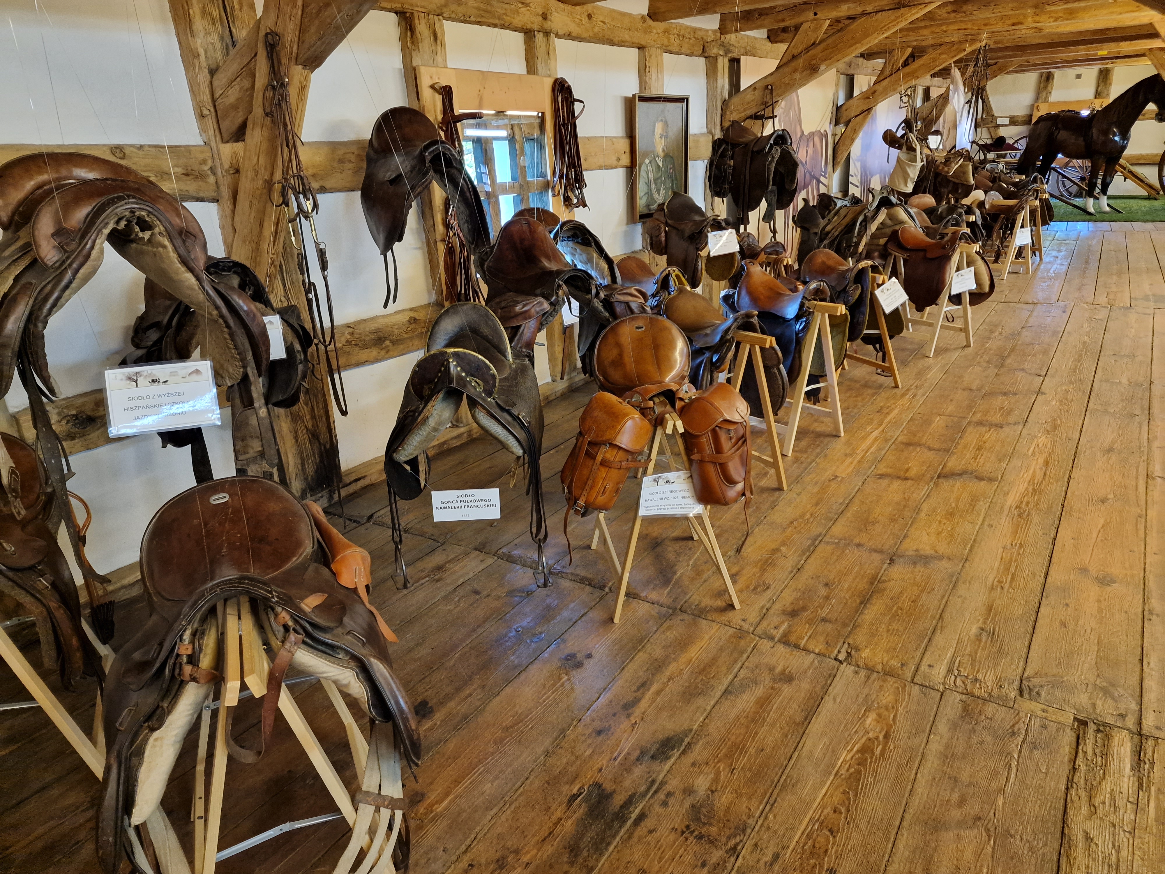 Jako że dni i godziny otwarcia muzeów nie wybaczają, oddaliłem się od Bystrzycy jeszcze bardziej, by zwiedzić Muzeum Powozów w Galowicach, umieszczone w potężnym spichlerzu szachulcowym. Liczyłem raczej na lokalną, sympatyczną ciekawostkę muzealniczą, ale otrzymałem muzeum naprawdę topowe w skali wojewódzkiej, bardzo poważnie i z rozmachem podchodzące do swojego tematu. Nie tylko powozy z różnych miejsc i epok, ale też mnóstwo przeróżnych akcesoriów konnych i komunikacyjnych (a nawet związanych z ogólnym życiem na wsi), szczegółowo i interesująco opisanych - wszystko to tworzy przestrzeń, w której z przyjemnością zgłębia się dzieje powoźnictwa, nawet jeśli za bardzo się nimi nie pasjonuje. Nie pierwszy raz zdarza mi się też już w podobnym muzeum najbardziej zachwycić się zabytkowym karawanem. Sam zabytkowy spichlerz, w którym mieści się muzeum, jest sam w sobie pewną atrakcją.